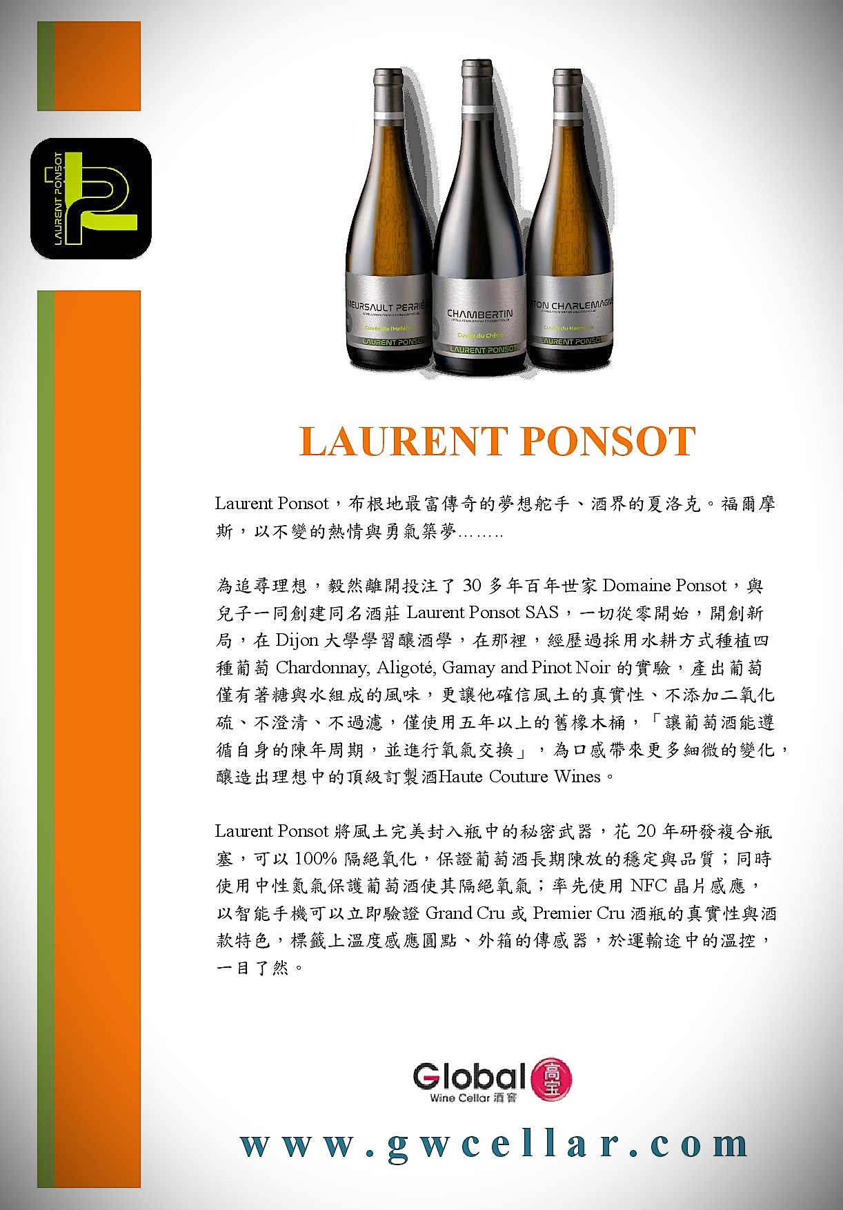 為追尋理想,毅然離開投注了 30 多年百年世家 Domaine Ponsot,與兒子一同創建同名酒莊 Laurent Ponsot SAS,一切從零開始,開創新局,在 Dijon 大學學習釀酒學,在那裡,經歷過採用水耕方式種植四種葡萄 Chardonnay, Aligoté, Gamay and Pinot Noir 的實驗,產出葡萄僅有著糖與水組成的風味,更讓他確信風土的真實性、不添加二氧化硫、不澄清、不過濾,僅使用五年以上的舊橡木桶,「讓葡萄酒能遵循自身的陳年周期,並進行氧氣交換」,為口感帶來更多細微的變化,釀造出理想中的頂級訂製酒Haute Couture Wines。